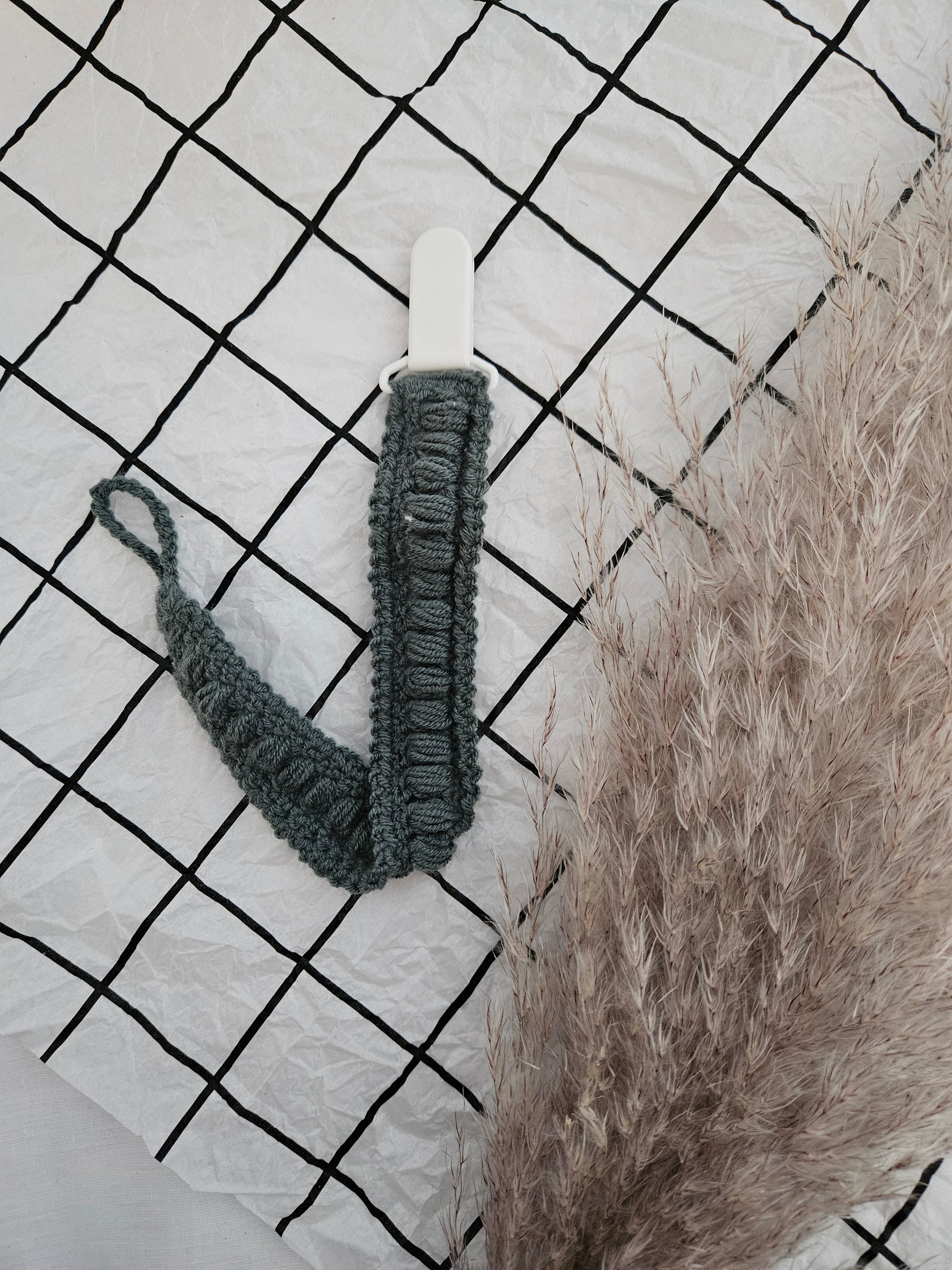Keep your baby’s pacifier safe and within reach with our handmade crochet dummy clip. Expertly crafted with love, this charming accessory combines functionality with style. The intricate crochet design adds a touch of elegance, making it not just practical but also a beautiful accessory for your little one.
