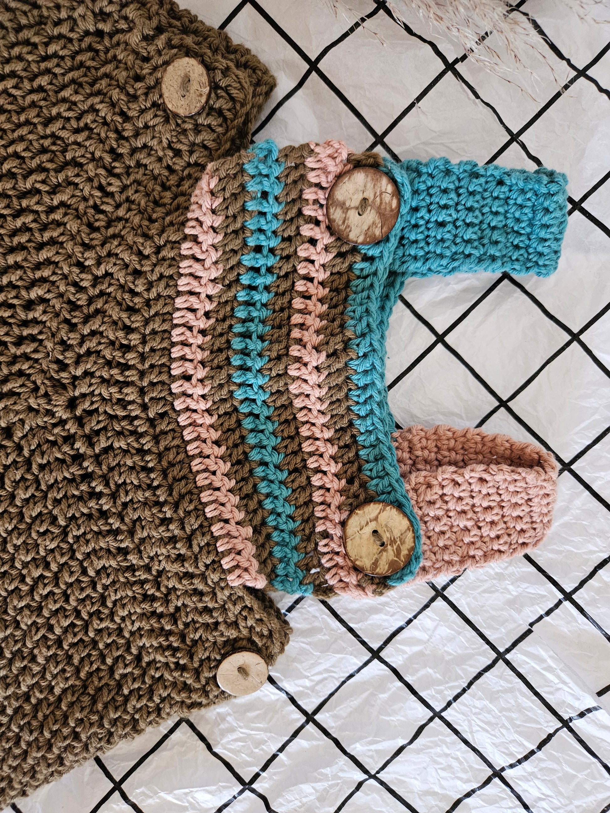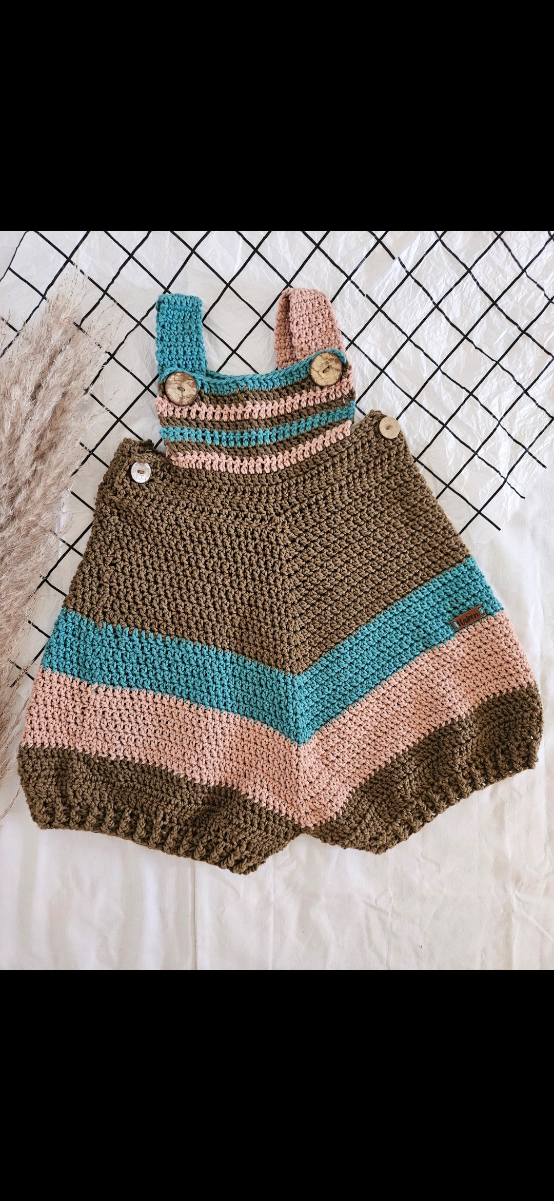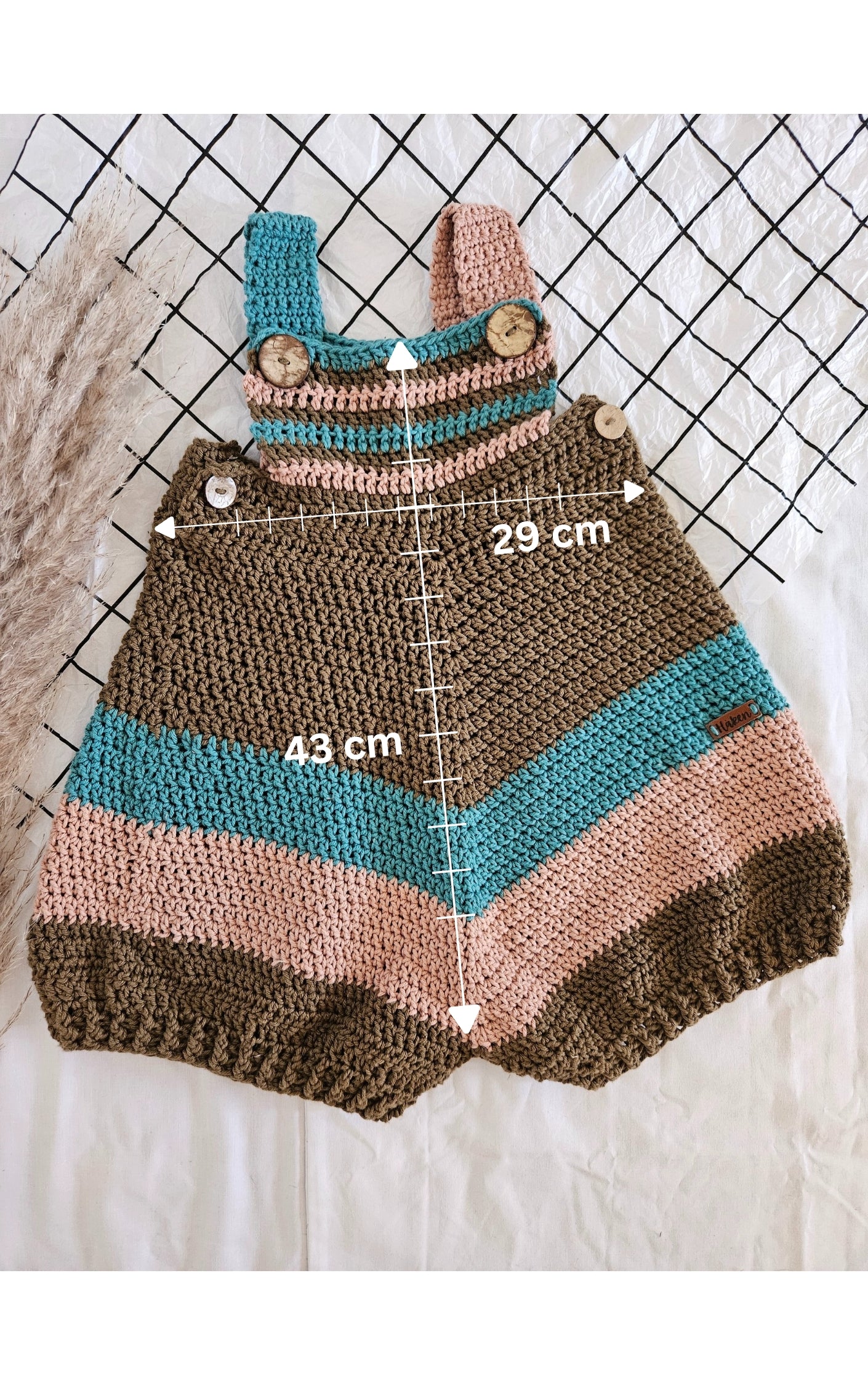 This adorable crochet romper is perfect for little ones aged 6-12 months, made with soft, breathable 100% cotton yarn to keep them comfortable during warm summer days. Featuring a charming design, it closes with rustic wooden buttons for a cute, practical touch.