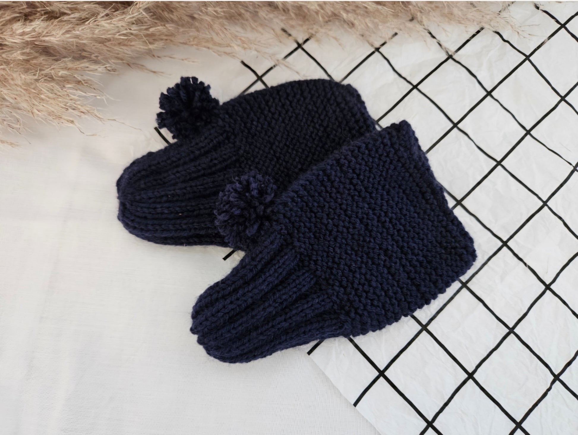 These cozy navy crochet slippers are designed for ultimate comfort, featuring playful pom poms for a fun touch. Perfect for lounging at home, they offer warmth and style in every step.